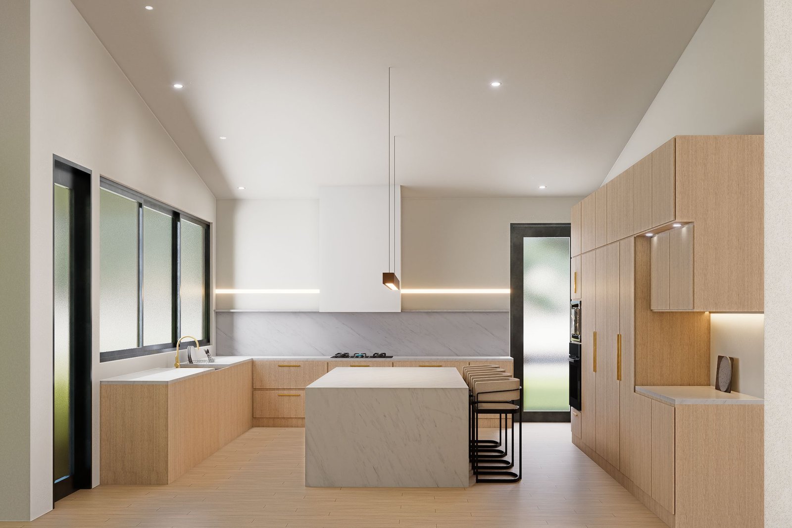 This project was a new build of a mid-century modern home. The goal was to honor the original architectural character of the neighborhood while introducing fresh, contemporary elements suited to modern living. To help my clients visualize the transformation, I began by creating detailed mood boards—starting with the kitchen, and bathrooms which served as the design anchor for the entire home. These mood boards helped define the palette, textures, and overall aesthetic direction.